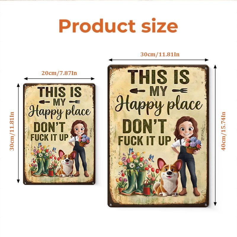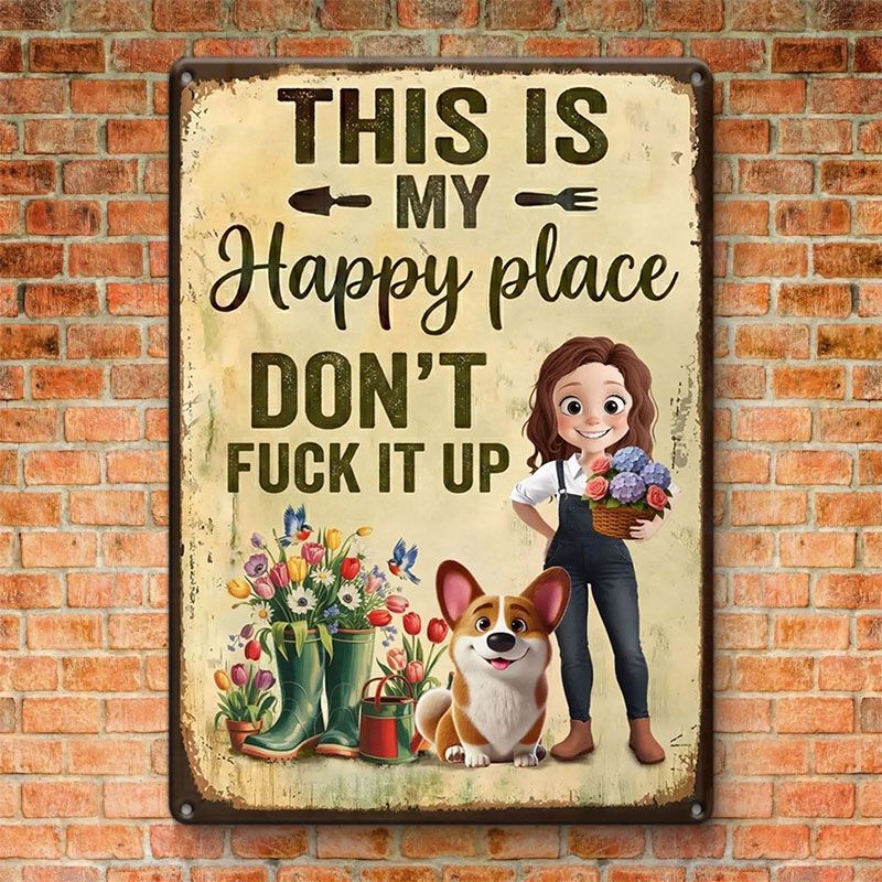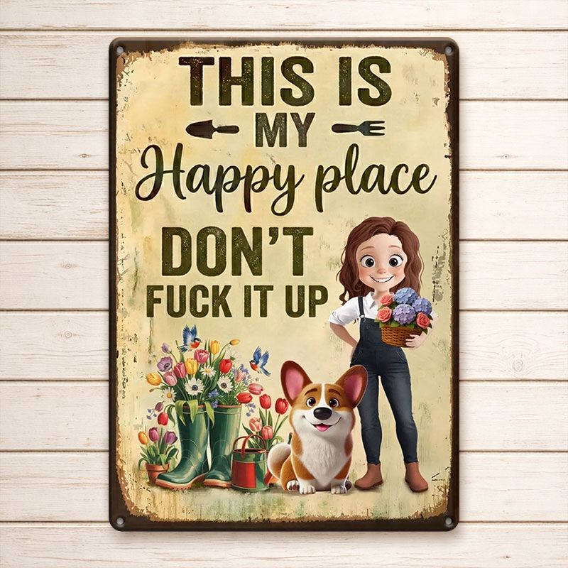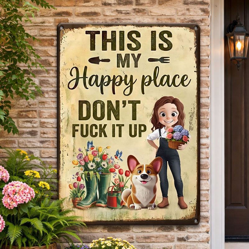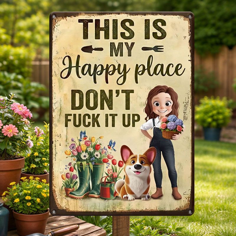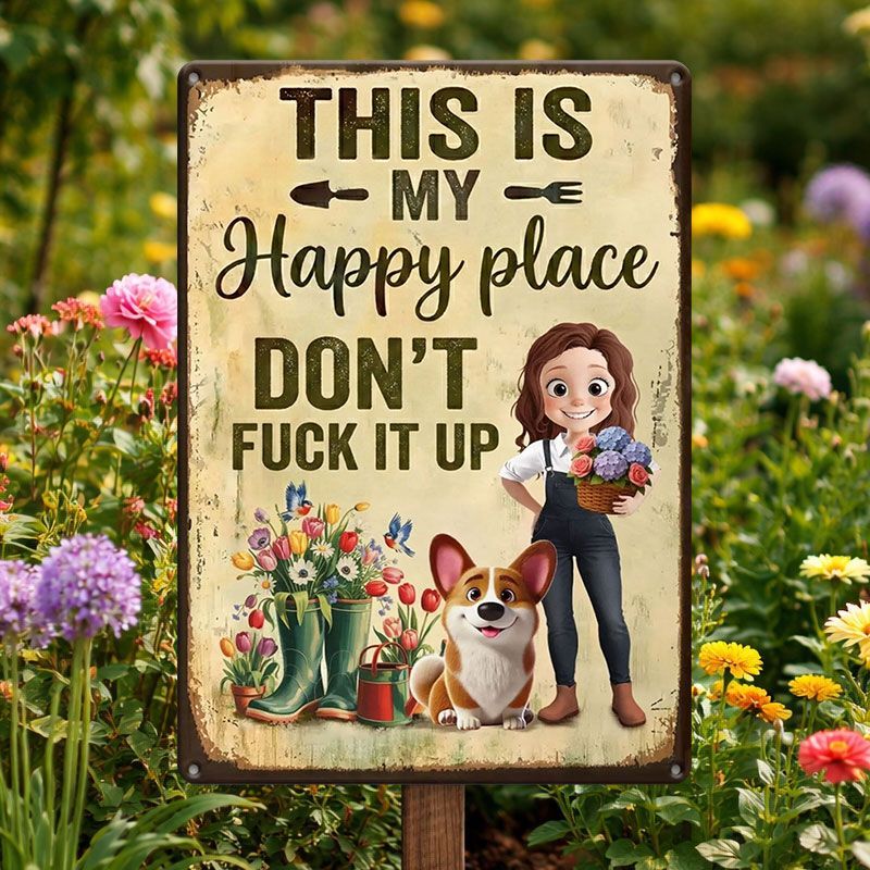 Personalized Metal Garden Sign – 'This Is My Happy Place' Decorative Garden Sign